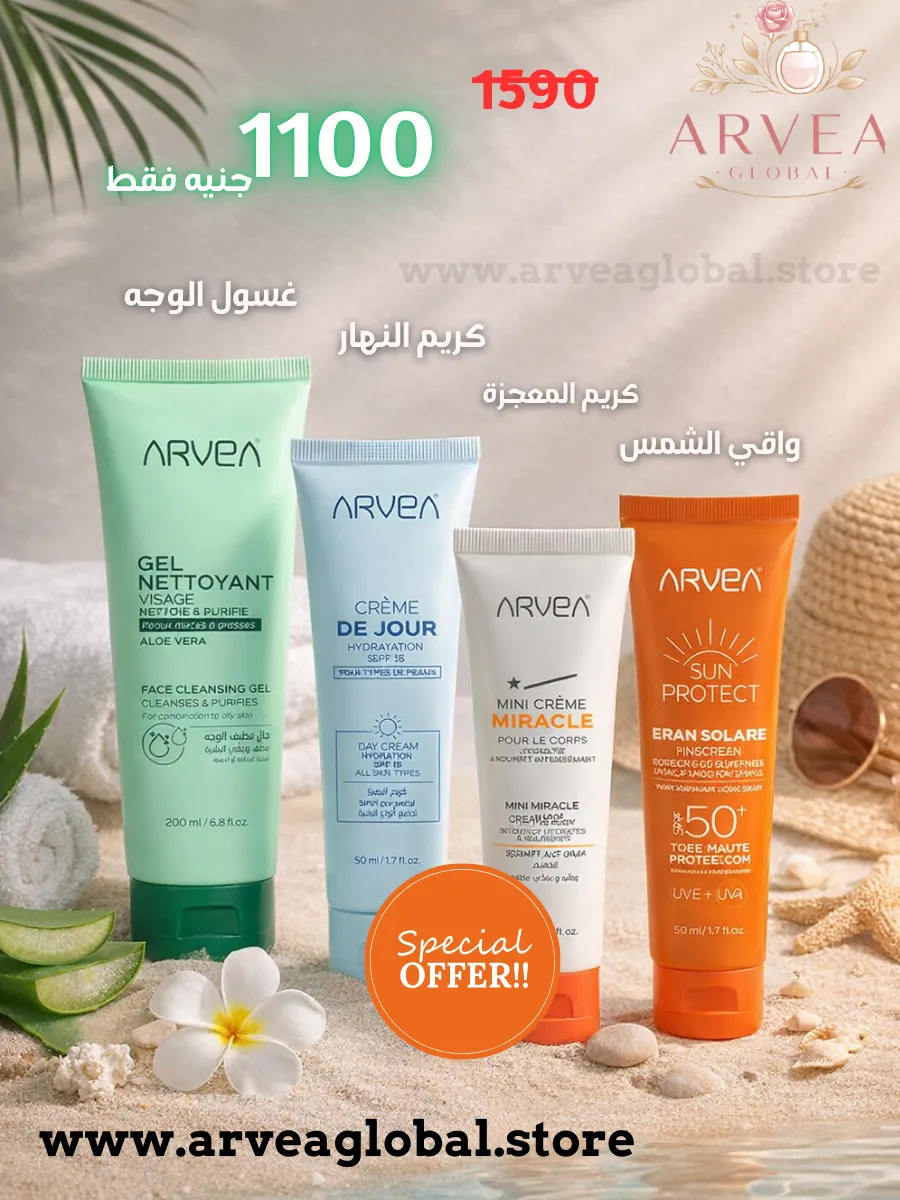 🌟 سواء كنت تبحثين عن تنظيف فعال، ترطيب عميق، حماية من الشمس، أو تغذية فاخرة للبشرة والجسم، فإن تشكيلة Arvea تجمع كل ما تحتاجين إليه في روتين يومي متكامل. 🌟